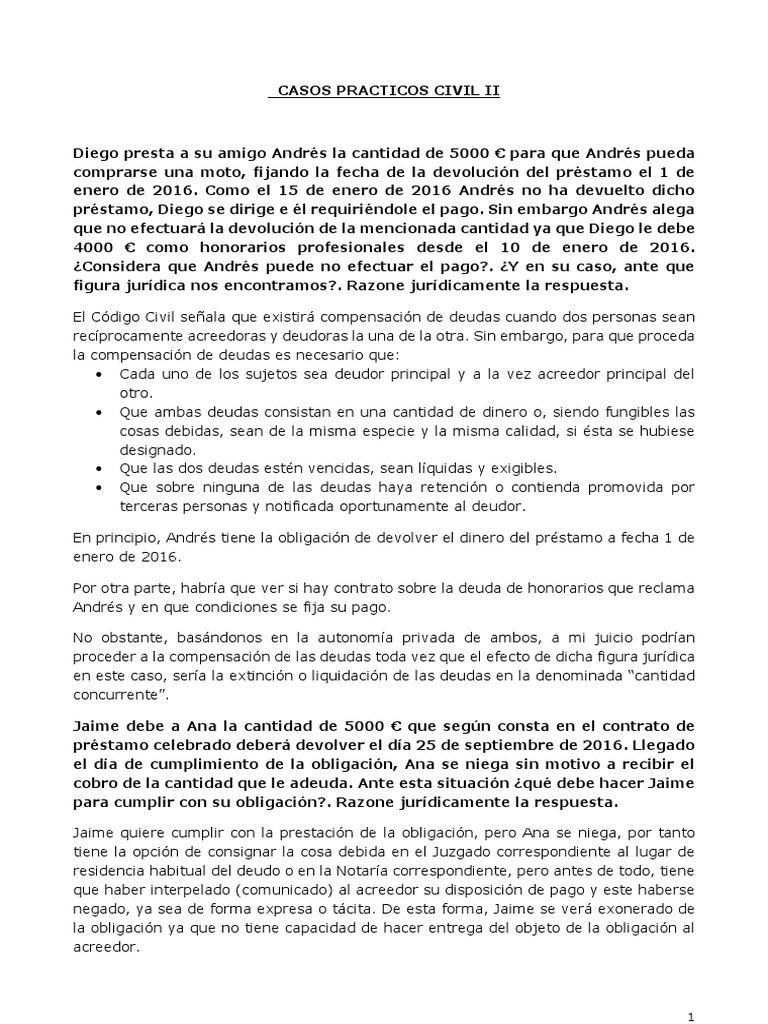 Casos Practicos Civil II | Pagos | Derecho privado