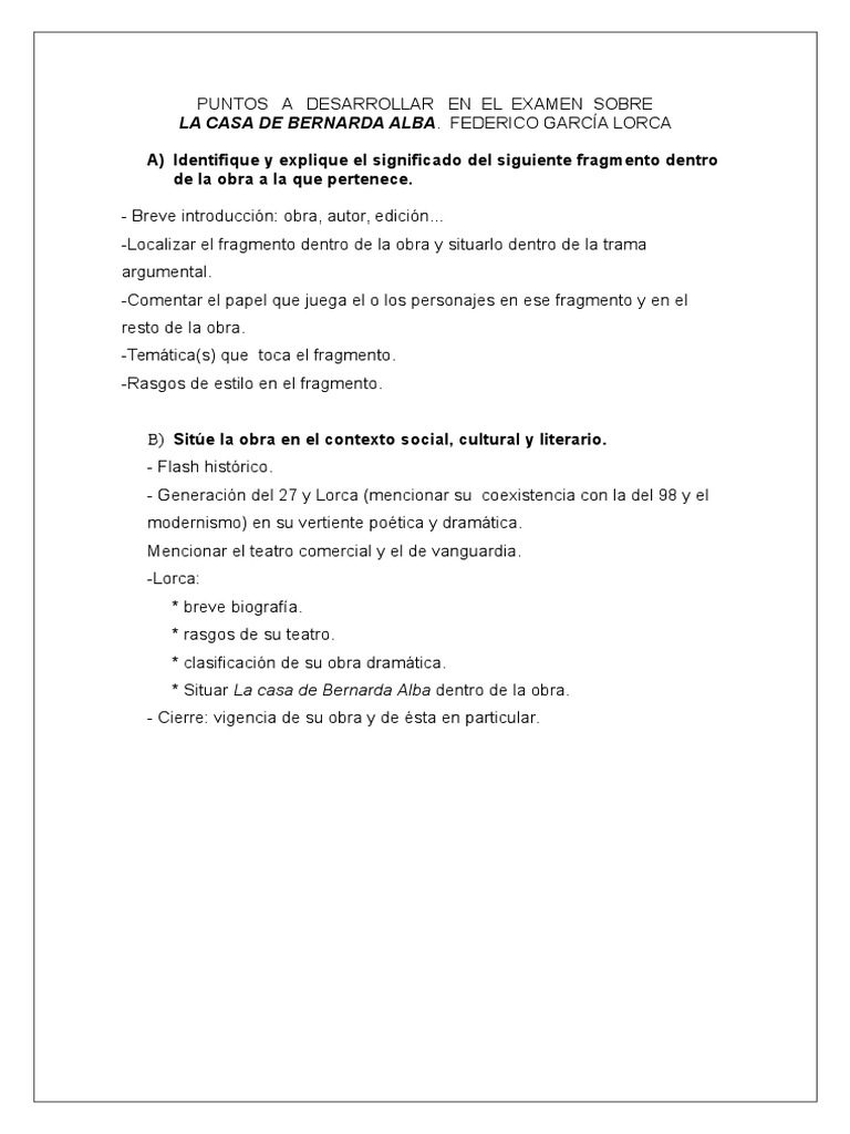Examen Bernarda Alba Comentario PAU | Mecánica del ...